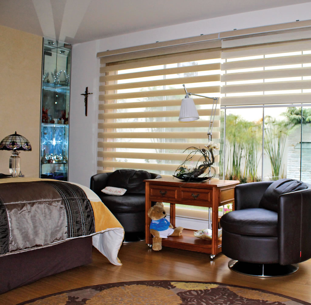 Su uso más frecuente es en ambientes que requieren una luz natural agradable, pero a la vez, que necesite privacidad y oscuridad.